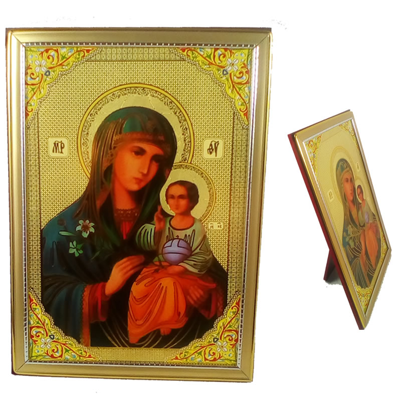 Εικόνα Της Παναγίας με Τον Ιησού σε ξύλινο πλαίσιο με κορνίζα και στήριγμα.