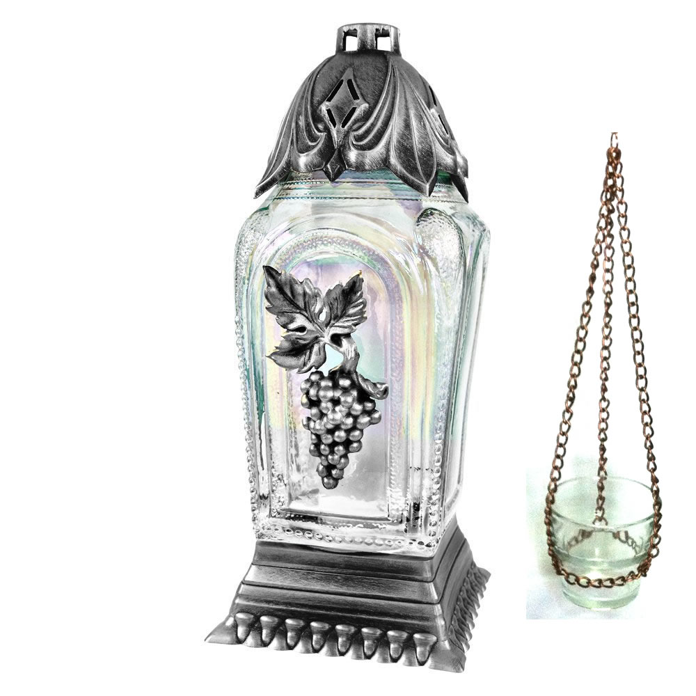 Καντήλι με κρύσταλλο σε χρώματα ουρανίου τόξου διακοσμημένο με ένα τσαμπί σταφύλι.