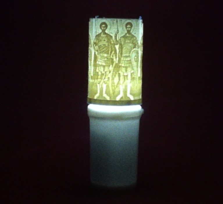 ΗΛΕΚΤΡΙΚΟ ΚΕΡΙ ΜΠΑΤΑΡΙΑΣ LED 90 ΗΜΕΡΩΝ ΜΕ ΤΟΥΣ ΑΓΙΟΥΣ ΘΕΟΔΩΡΟΥΣ